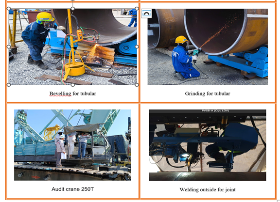 Trong quá trình thi công, tập thể người lao động phải đối mặt với nhiều thách thức như nâng hạ, vận chuyển các kết cấu siêu trường siêu trọng, làm việc trong không gian hạn chế, nhiệt độ cao do yêu cầu gia nhiệt trước và trong khi hàn để bảo đảm chất lượng mối nối.