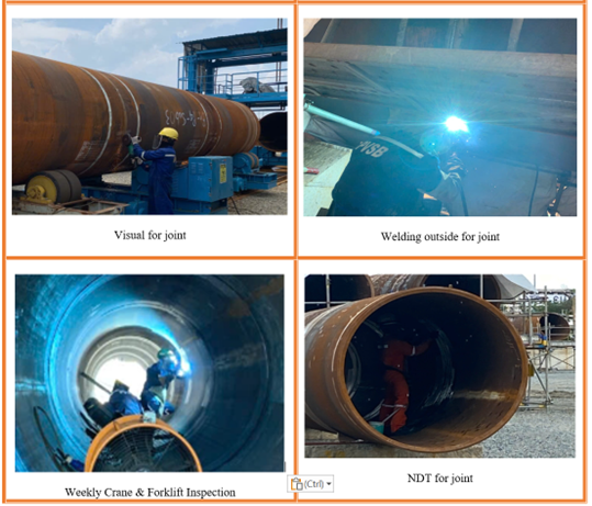 Hợp đồng gia công chế tạo Cọc Chân đế dự án Lạc Đà Vàng được khởi công ngày 15/03/2025. Để đảm bảo tiến độ và chất lượng công trình, PVSB đã áp dụng phương pháp tổ hợp từng phân đoạn (Sub-segment), sau đó tổ hợp thành đoạn (Segment) và hoàn thiện thành cọc theo đúng thiết kế, bảo đảm an toàn, chất lượng và vướt tiến độ khách hàng đưa ra.