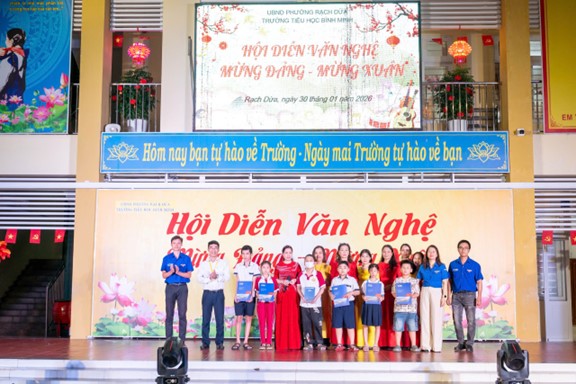 Tiếp nối chuỗi hoạt động ý nghĩa đó, ngày 30/01/2026, trong khuôn khổ chương trình, Đoàn Thanh niên hai đơn vị tiếp tục phối hợp cùng Trường Tiểu học Bình Minh, Phường Rạch Dừa trao tặng 05 suất học bổng cho các em học sinh có hoàn cảnh khó khăn vươn lên trong học tập và ủng hộ 01 phần quà cho học sinh mắc bệnh hiểm nghèo đang điều trị dài ngày.